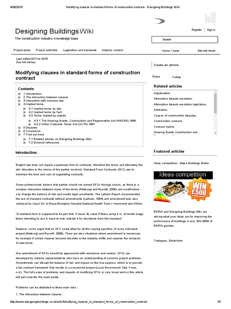 In malaysia, general conditions of contract are compiled as a set of documents commonly known as the standard forms of contract. A standard form of contract is a contract between two parties, where the terms and conditions of the contract are set by one of the parties while these types of contracts are not illegal per se, there exists a very real possibility for unconscionability. Standard chartered bank malaysia berhad makes no warranties, representations or undertakings about and does not endorse, recommend or approve the contents of the 3rd party website. Similarities of standard forms of construction contractfull description. Dealing with construction contracts can be daunting for this talk will cover the basics of construction law, standard forms of construction contracts, common problems and disputes in construction.