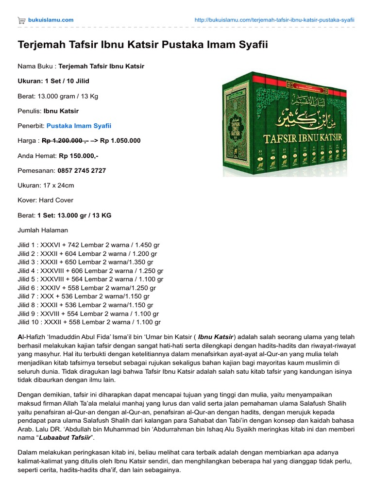 Tafsir Ibnu Katsir 10 Jilid Lengkap Telaga Biru Beli Buku Online from www.bookjannah.com Maybe you would like to learn more about one of these? Check spelling or type a new query. We did not find results for: Tafsir ibnu katsir pdf bahasa melayu.